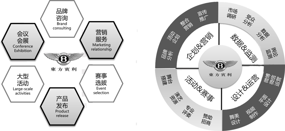 东方宾利公司成立于2003年5月。公司拥有企划、制作、时尚媒介推广资源和模特资源,下设企划部、制作部、大赛部、国际部、模特部、艺人部、新媒体部、行政部等机构,是一家综合性时尚文化传媒公司。主要业务由四部分组成:活动企划制作、国际文化交流合作、模特经纪和推广、媒体宣传与合作。2016年6月,东方宾利成为北京市文化投资发展集团下属文化类上市公司(股票代码:600715,简称“文投控股“)